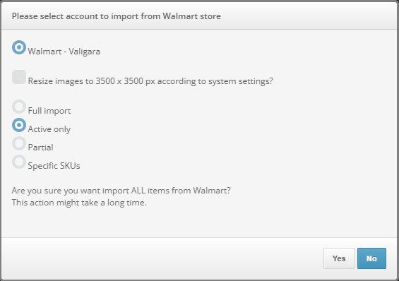 - Partial - enter any number of listings to import. Listings will be taken according to their Walmart ID, from lowest to highest